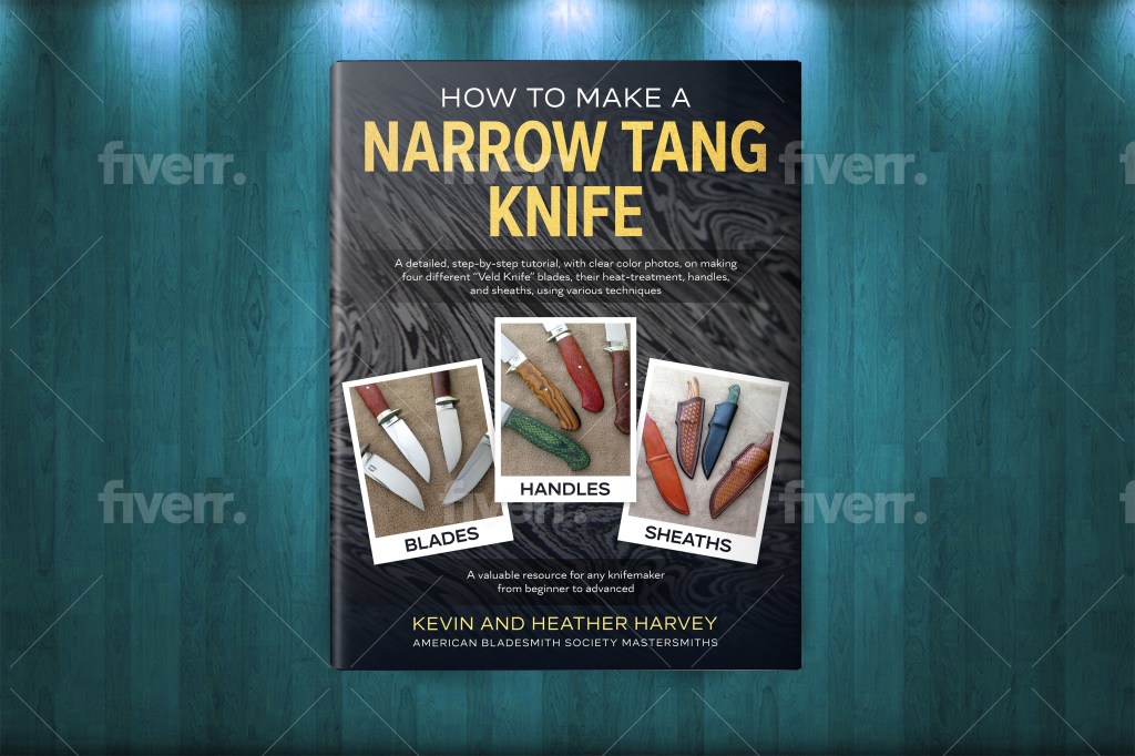American Bladesmith Society Master Bladesmiths, Kevin and Heather Harvey, will guide you through every step while creating a narrow tang knife. From selecting the correct steel to explaining the intricacies of heat treatment. Everything will be covered, from grinding and polishing blades to fitting the guard and handle, and eventually finishing it off with a sturdy sheath. In this book of over 270 A4 pages, with 880 clear color photos, you will be ensured that each step is explained fully. Foreword by Daniel O’Malley, president of BladeGallery.com.